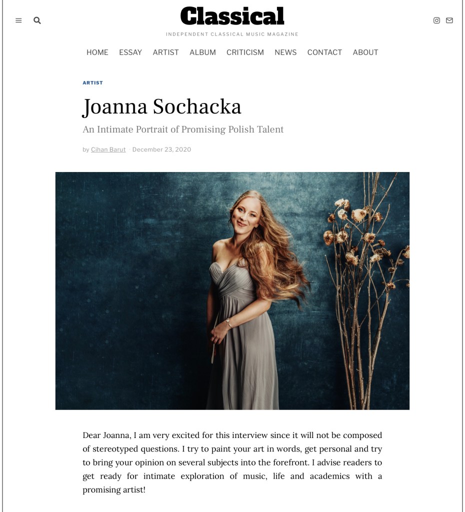 Interview for Classical Music Magazine – http://classicalmag.com/joanna-sochacka-392/